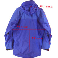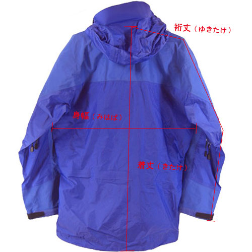 【身幅】 両袖の付け下を直線で測った長さ。 【袖丈】 肩縫い目から袖口のまでの長さ。 【裄丈】 主にラグラン袖の場合。背中のえり付け根から袖口までの長さ。